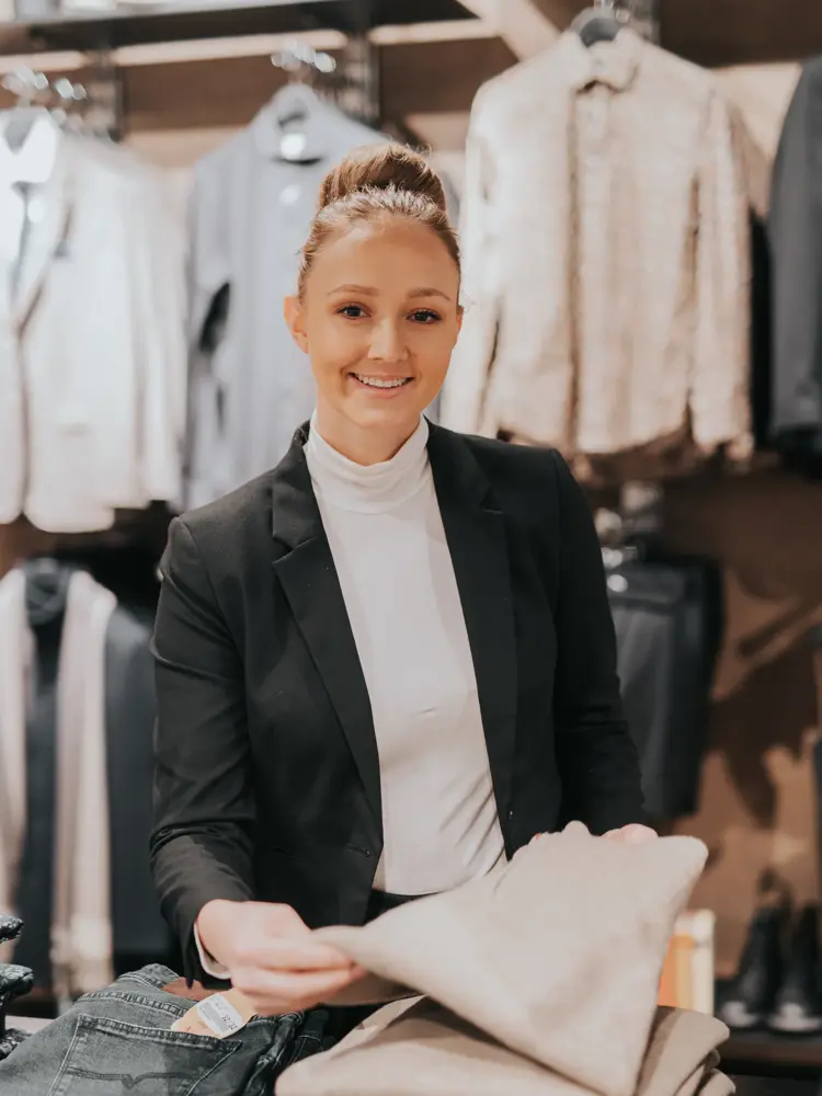 – Jeg har jobbet med klær og salg siden jeg var 16, og trives veldig godt i salgsjobben. Det å treffe folk, prate med dem, finne ut hva de trenger og hjelpe dem med å gjøre et godt kjøp. Jeg er glad i folk, nysgjerrig og interessert, og føler på mange måter at jeg får bli litt kjent med kundene. Jeg har mange stamkunder, og det er utrolig hyggelig, sier hun.