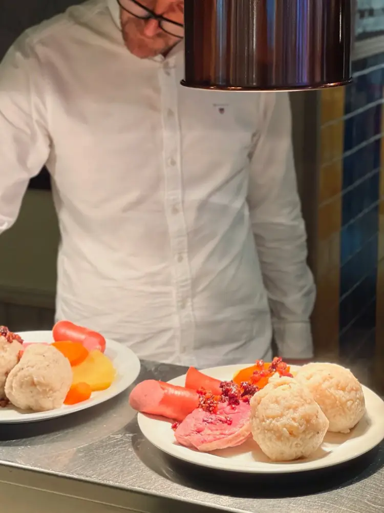 - Komle/Raspeball : Ball made of potatoes, flour, water and salt. Paired with the komle, there is sausage, bacon, salt meat, carrots and a stew of turnip or kohlrabi. Some people even use a little bit of sugar and melted butter to dip the komle in😉