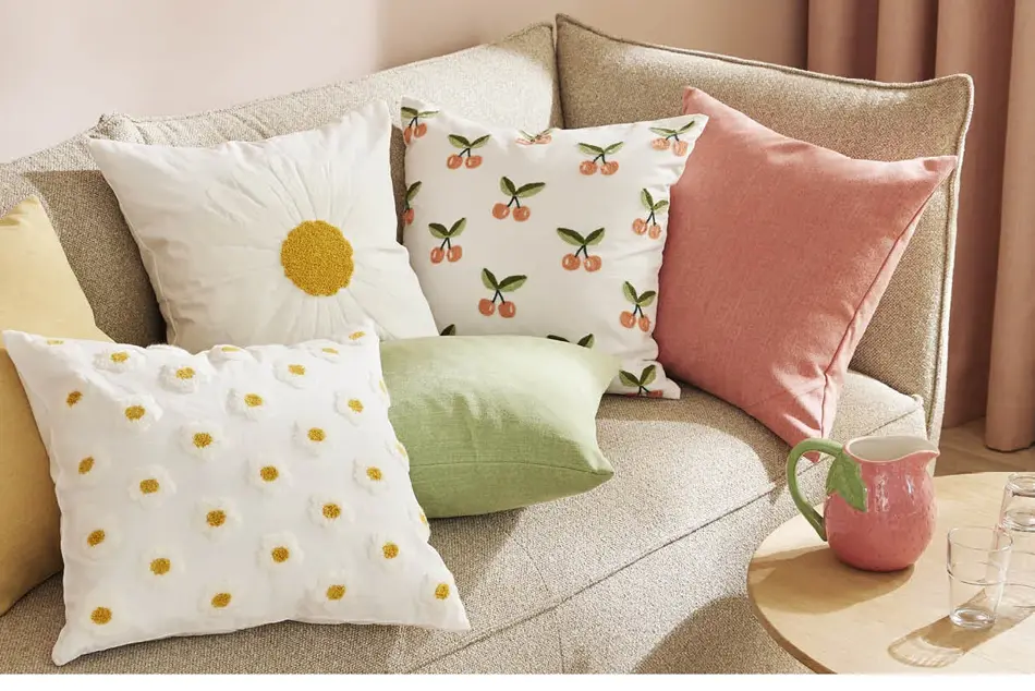 - Kombiner ensfargede puter med mønstrede for kontrast