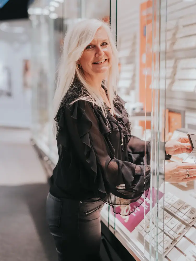 Hun har etter hvert blitt godt vant både med mennene som kommer i siste liten på julaften, og med ungguttene som for første gang skal kjøpe ring eller smykke til en kjæreste.
